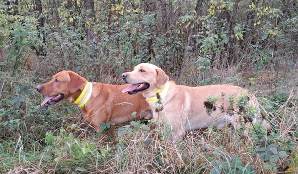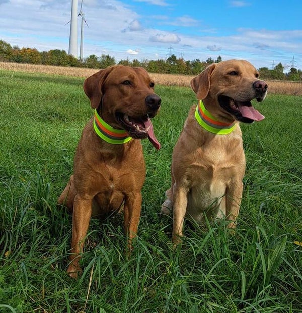 - leuchtgelbes Hundeband mit reflektierenden Streifen